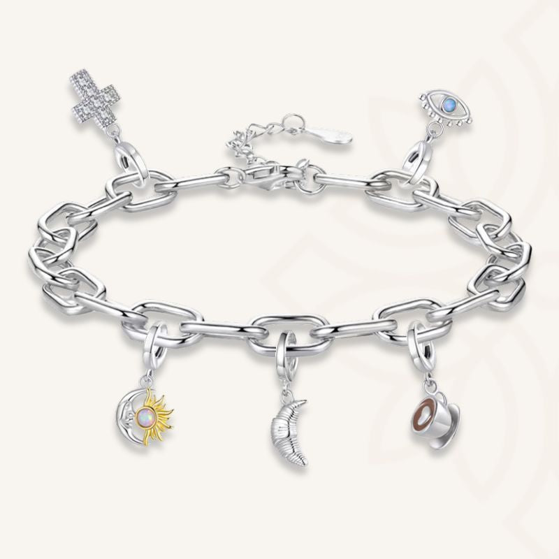 Elige tu base (pulsera o cadena) y añade tus charms favoritos para contar tu historia con estilo.