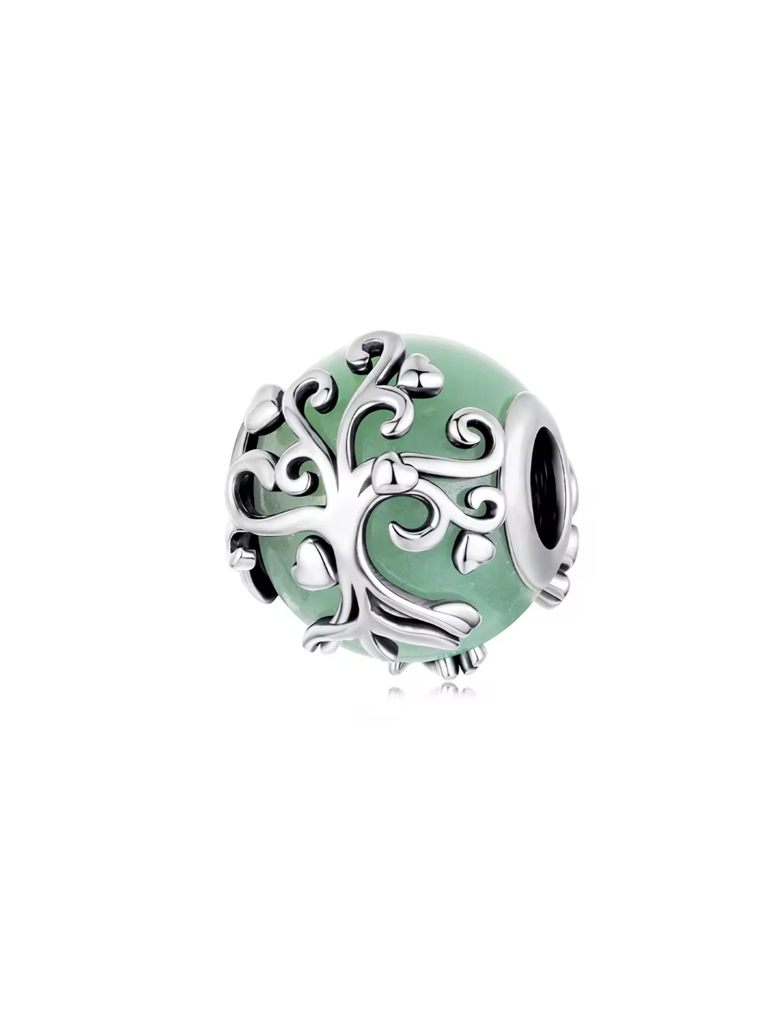 Un charm que conecta contigo 🌿. Su diseño representa el Árbol de la Vida, símbolo de equilibrio, conexión y energía positiva. Está elaborado en Plata de Ley 925 con un delicado trabajo calado en filigrana sobre aventurina verde natural.