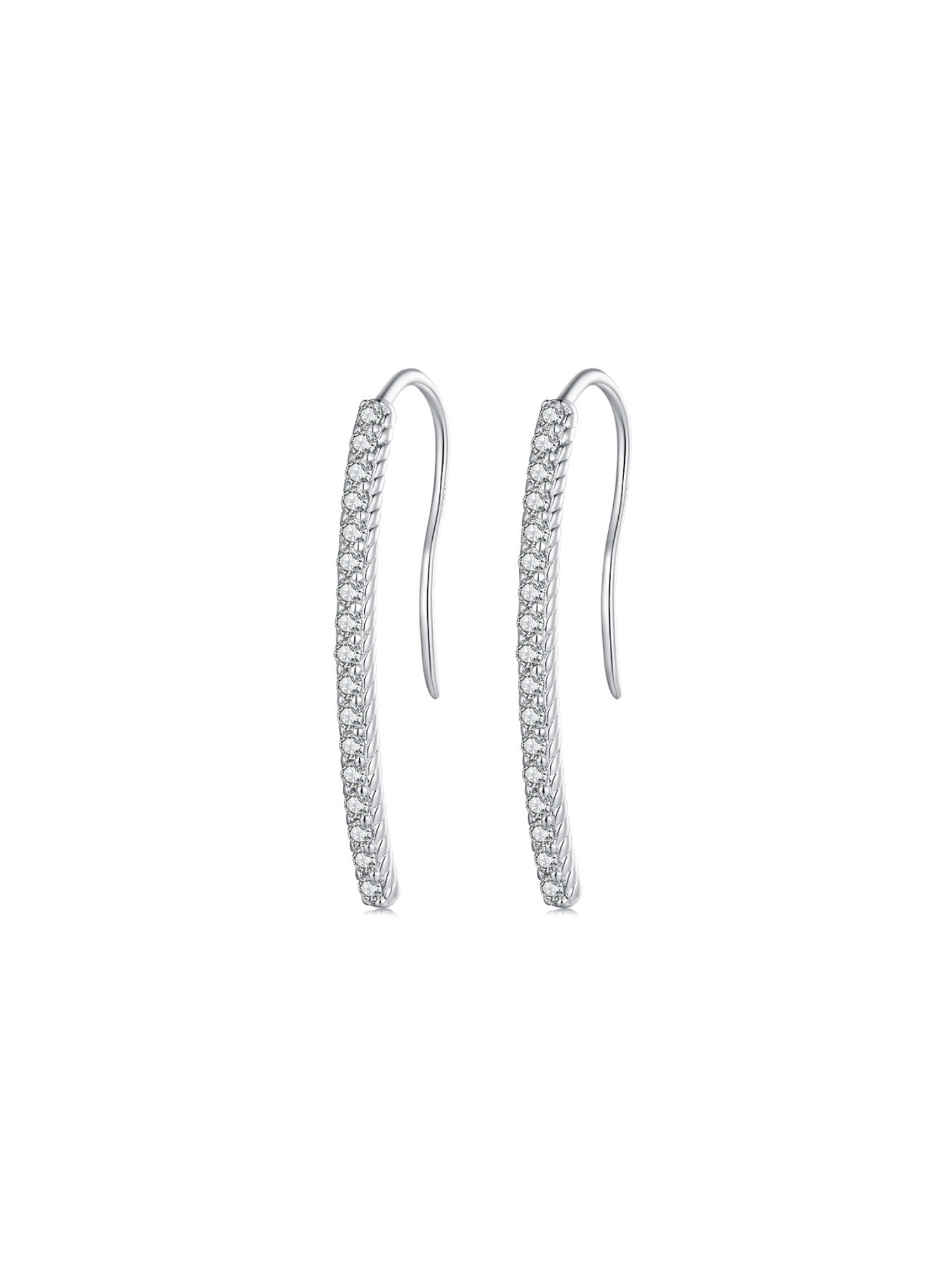 La parte visible de los pendientes está adornada con una larga hilera de circonitas. La combinación de la calidad de la plata de ley con el brillo de las circonitas crea una joya de diseño atemporal y duradera en el tiempo. 💎🎁